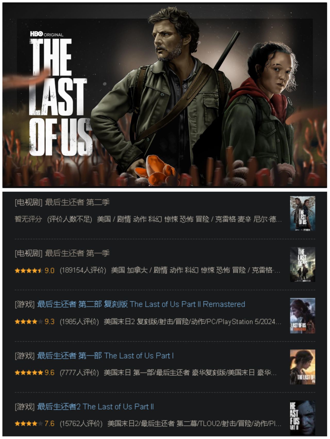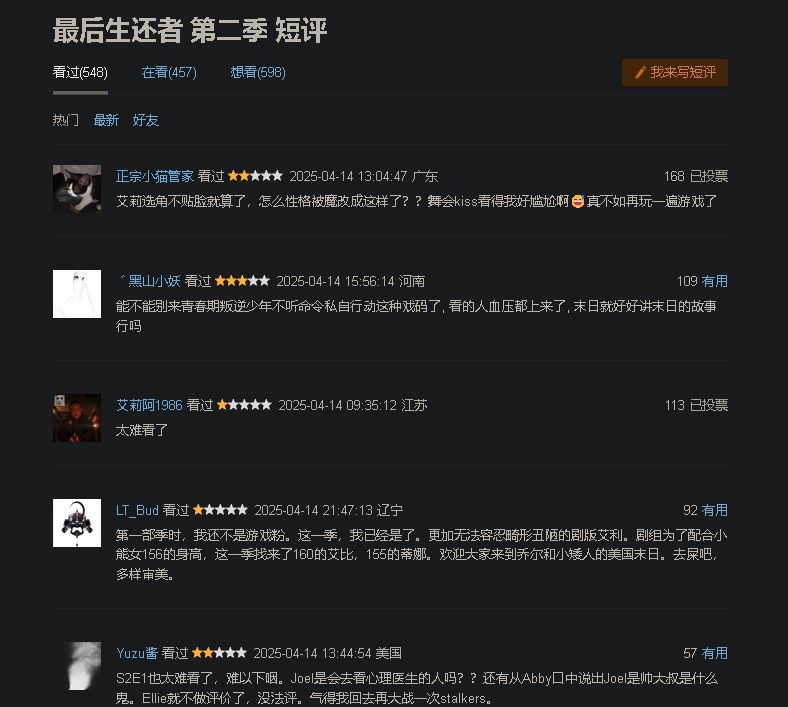 借着剧版第二季上线随便吐槽一下乔尔之死,目前第二季还没开分,不过看社区跟打分的势头,豆瓣应该拿不到第一季这么高的分数了,最后生还者1过了这么多年仍旧是我心里神作之一,但是每次想到乔尔之死就觉得可惜。