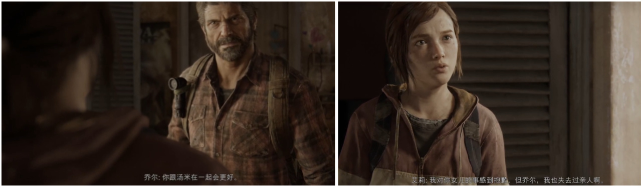 这两个人在这场瘟疫之下,都失去了自己最重要的人,但是也都找到了同样重要的人,两人的关系从最开始的互相嫌弃谁看谁都不顺眼,到后来经历一系列之后,发现对方已经重要到无法失去,这样的角色碰撞带给玩家的感受是深刻的,也正是这样的角色塑造,让美末这一IP成了多少年剧情单机推荐名单里必不可少的一作。