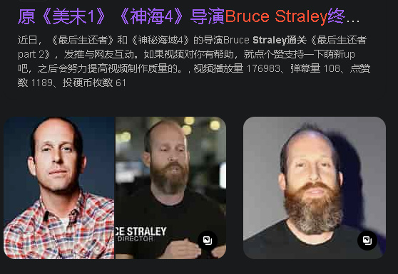 美末1的成功更重要的一个原因还有总监Bruce Straley的功劳,除了美末1他也是神海4的总监,可以说感谢他在这两部神作中发挥的作用,起码这两部玩起来无论是体验还是剧情都是很舒服的。