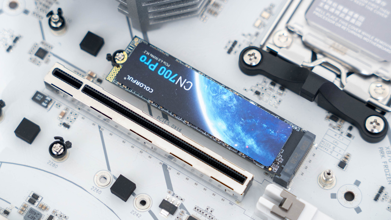 既然全家桶了,這裏固態硬盤也是來自七彩虹的CN700 Pro 1TB,採用新一代PCIe 4.0技術,採用標準M.2 2280 尺寸設計。讀取速度可以實現7000+的表現,這款也是七彩虹目前最高端SSD的代表。