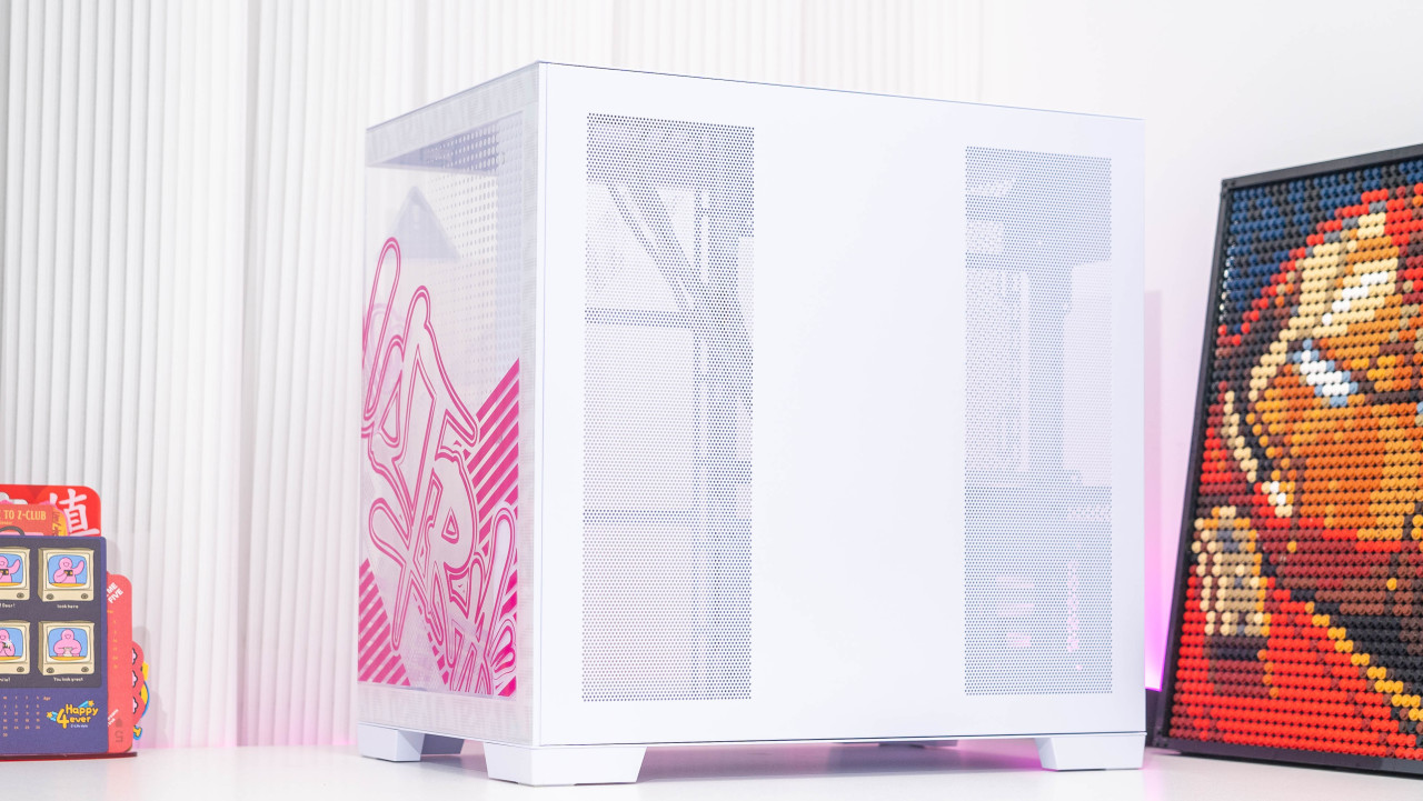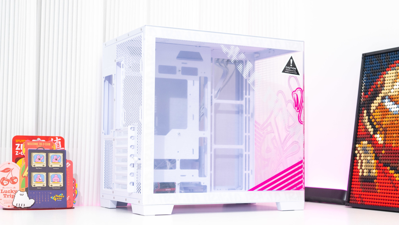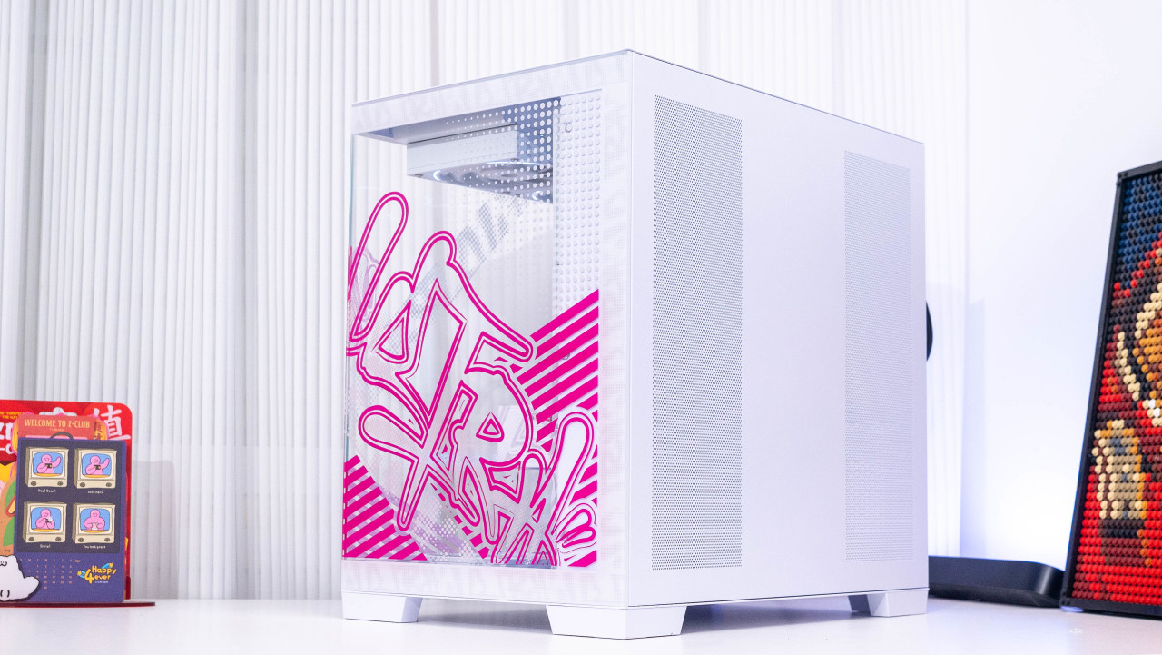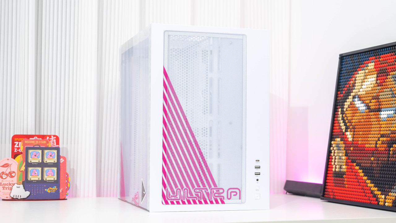 機箱頂部的磁吸防塵網也裝飾了粉色的Ultra裝飾圖案。
