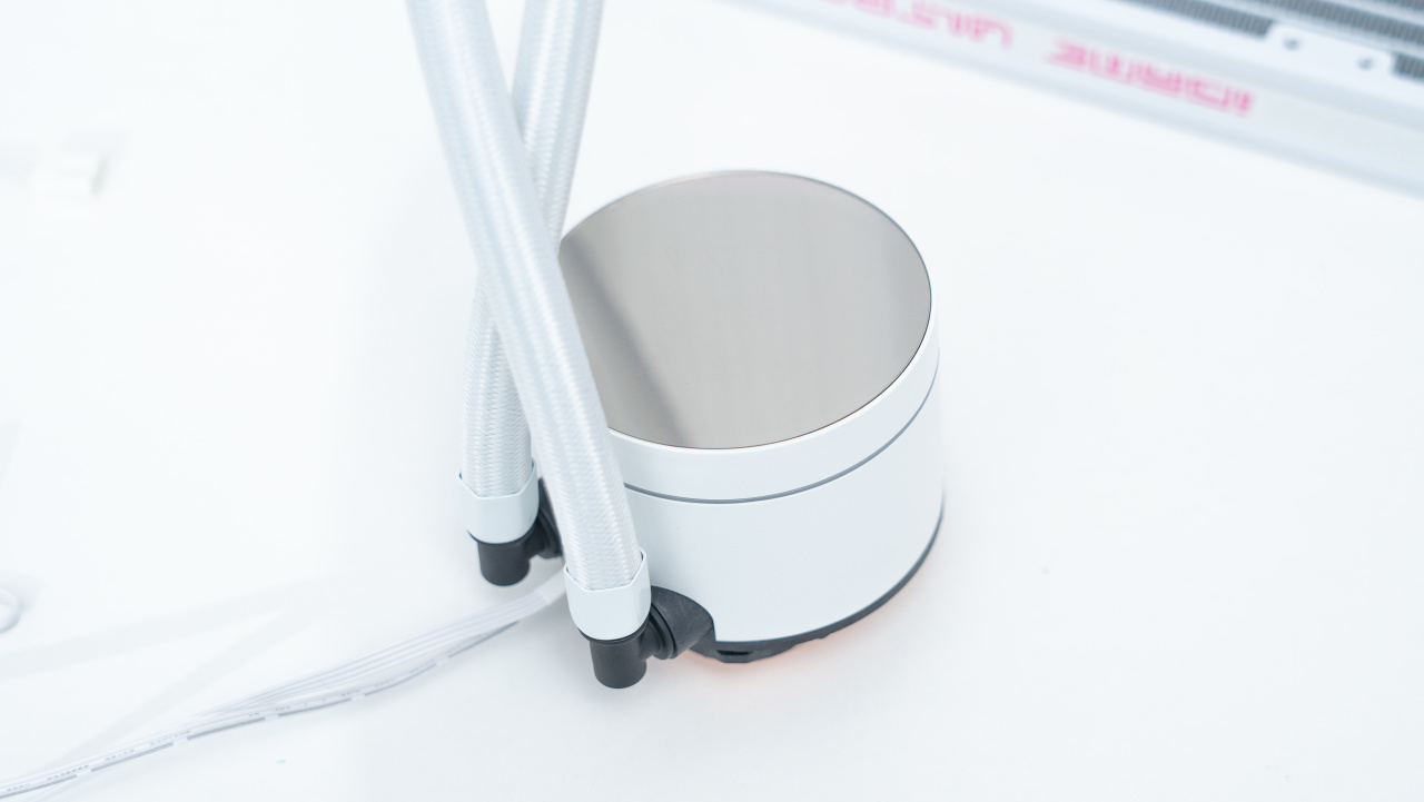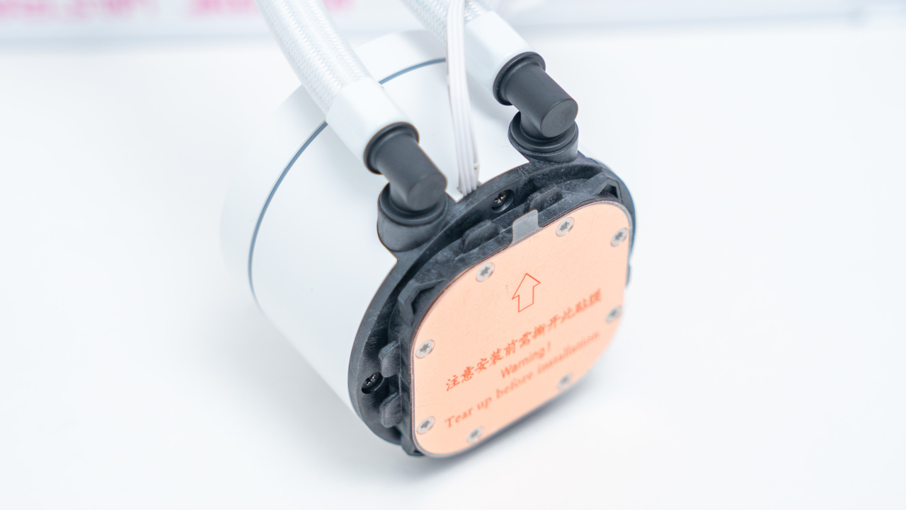 冷頭採用了精工打磨的純銅底座設計,可以更貼合處理器表面。內部採用了V9架構水泵,提供最高3000RPM澎湃動力搭配高密度鏟齒微水道,提升熱交換效率。