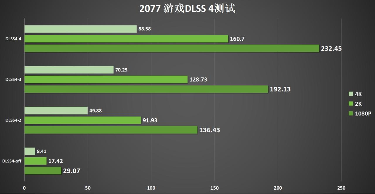 對比上一代RTX 4060 Ti顯卡在2K以及1080P分辨率下開啓DLSS 4後的幀數提升更是驚人的5倍幀數表現。相信如果考慮RTX 5060 Ti首發價格與RTX 4060 Ti價格不變或者接近的話,在DLSS 4加持下RTX 5060 Ti可能會是這次RTX 50系中性能提升最大的一張顯卡了。
