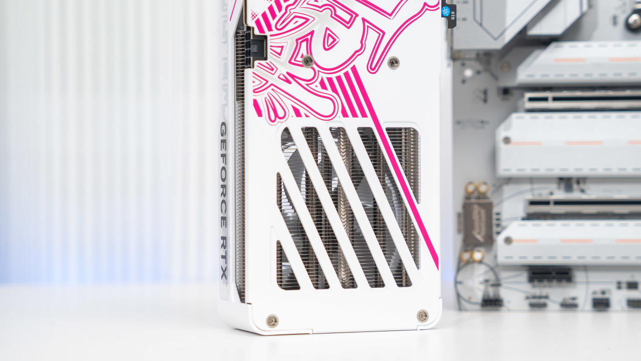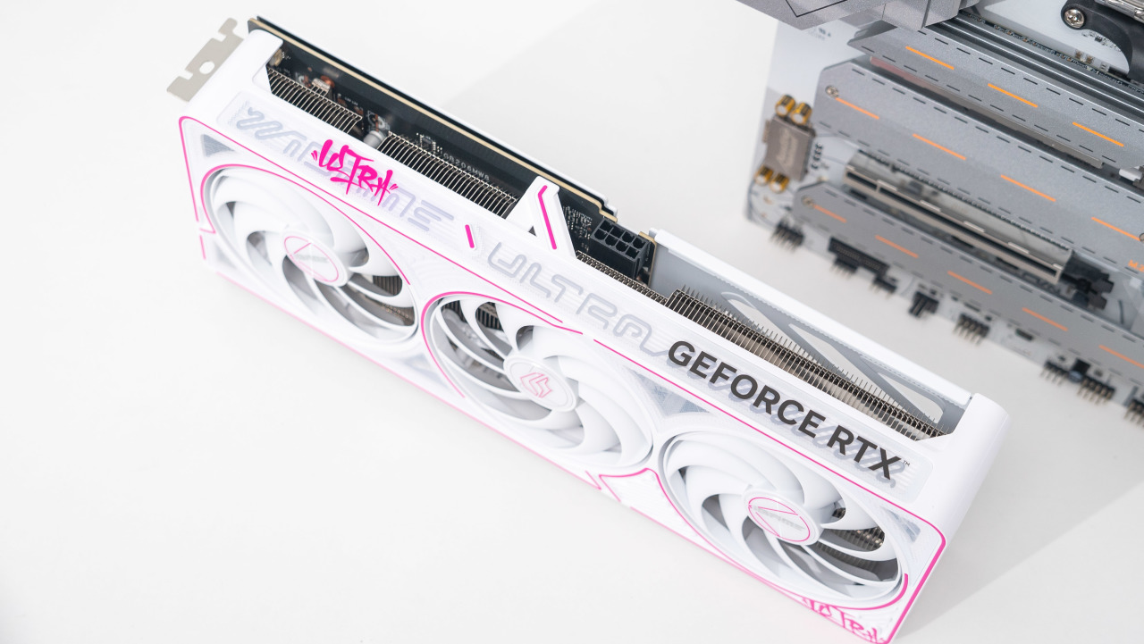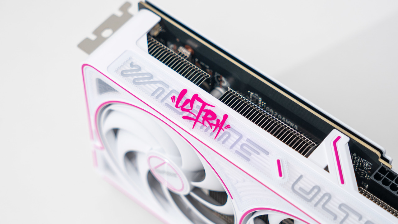 顯卡金屬背板上採用了桃粉色的塗鴉設計,Ultra字體裝飾其中。背板與正面相呼應,顯卡整體都充滿了嘻哈元素設計。