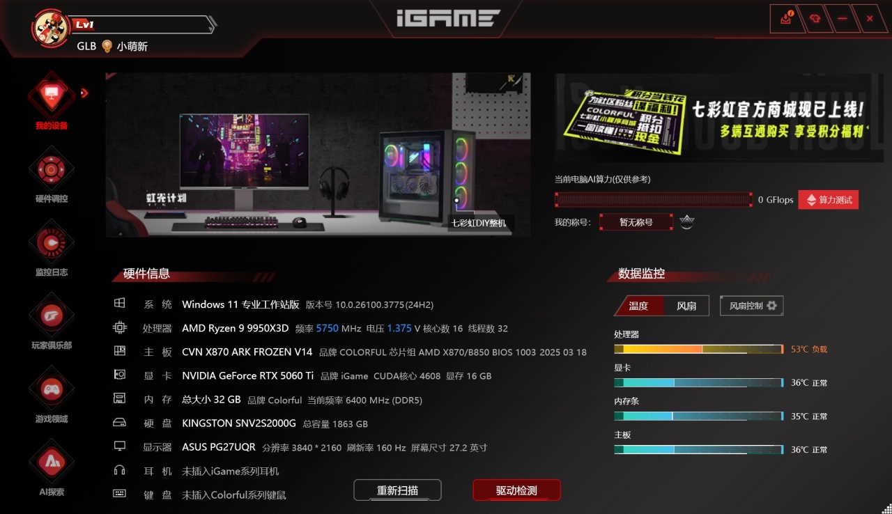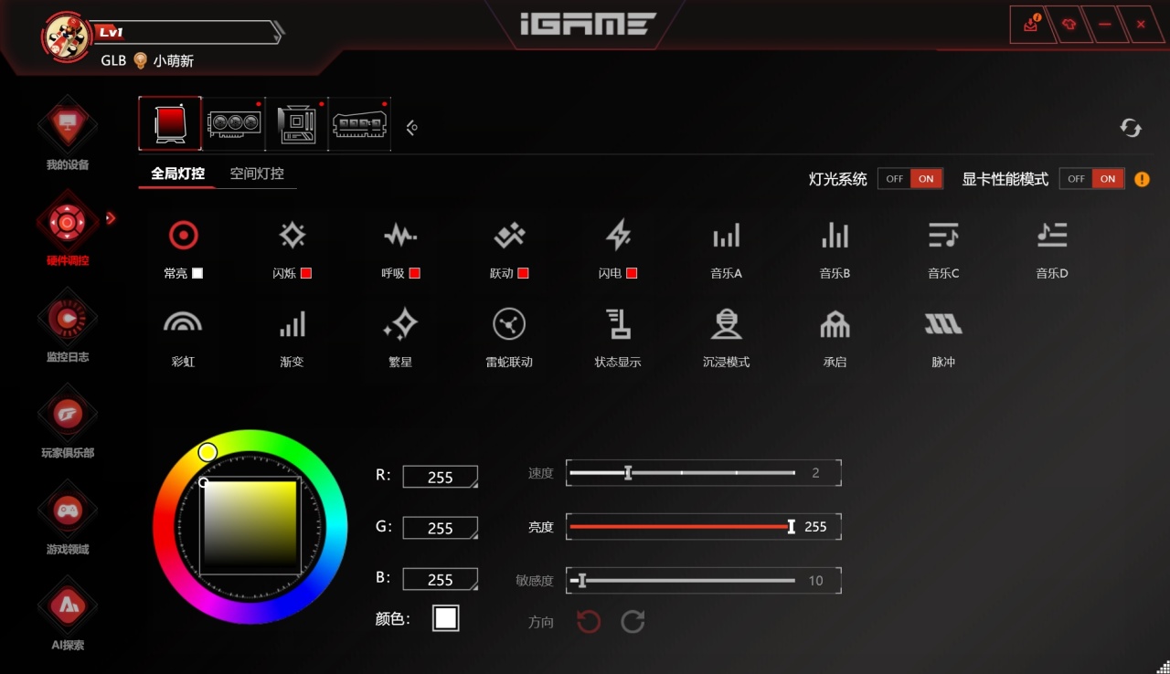 iGame “自在星球” 軟件可以進行燈光管理以及硬件超頻設置,如果你是七彩虹全家桶用戶就可以通過iGame“自在星球”軟件快速進行整機的燈光同步。