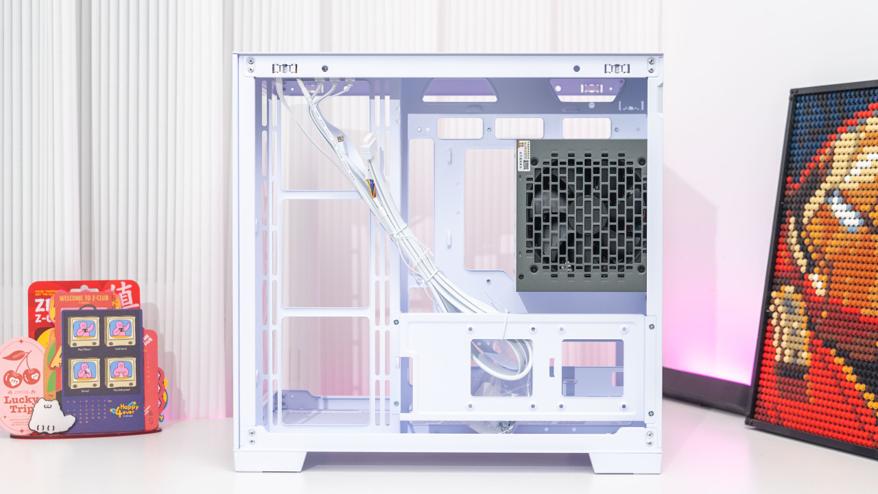 機箱背後空間一覽,搭配鑫谷無界M650W電源安裝效果。