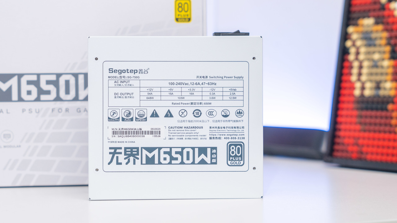 鑫谷的無界M650W電源採用黑白灰的柔和撞色演繹東方美學,這樣的設計也與七彩虹iGame Ultra系列的設計語言相呼應。650W額定功率,基於LLC Pro+DC-DC準白金架構,高規格105℃/420主電容,主動式PFC電路,配備成熟多重保護策略,中端電源標杆級產品。