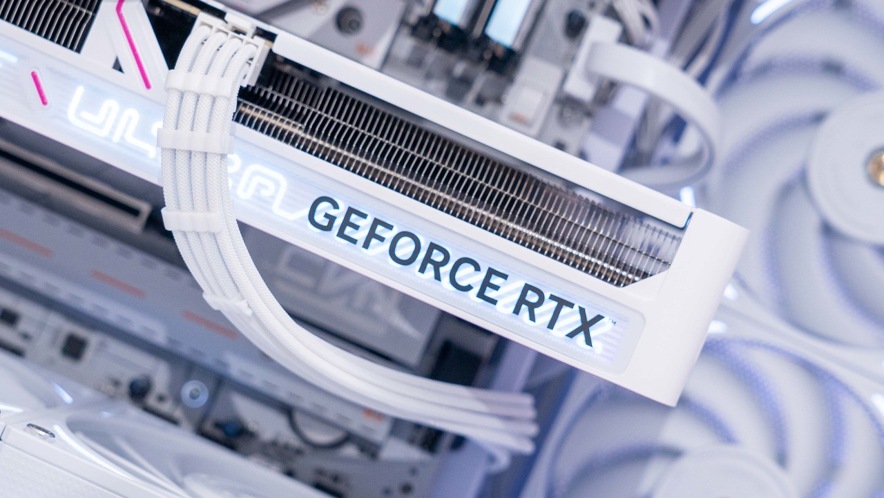 燈光效果,這裏我選擇了整機同步白色的光效。這張iGame RTX 5060Ti Ultra W OC顯卡側面有iGame Ultra字樣部分支持燈光效果,整體看上去很有圖騰設計的感覺。