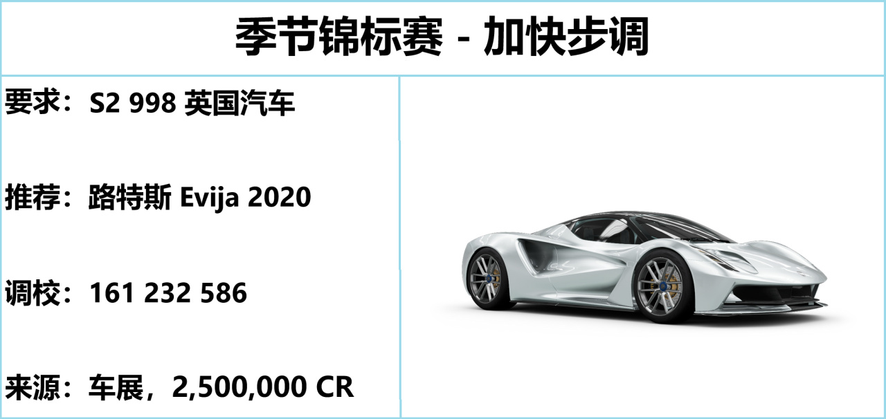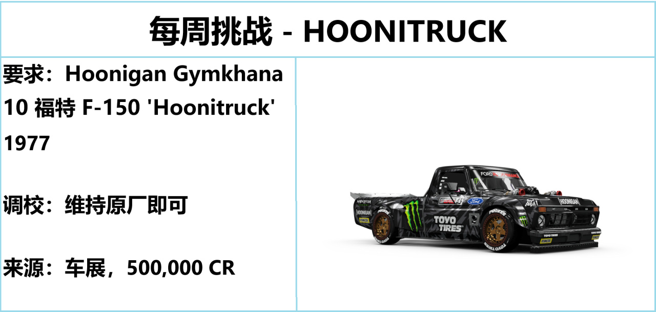 該車可在車展花費 4.5 遊戲幣兌換,爆改後去跳長距離的危險標誌(例如山頂)。