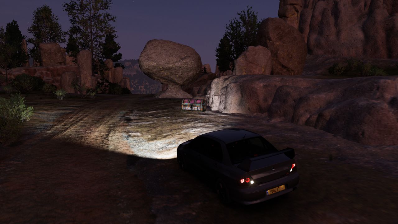 驅車抵達該處,可在岩石壁的邊上找到寶箱,撞碎後能獲得 100 馬拉松點。