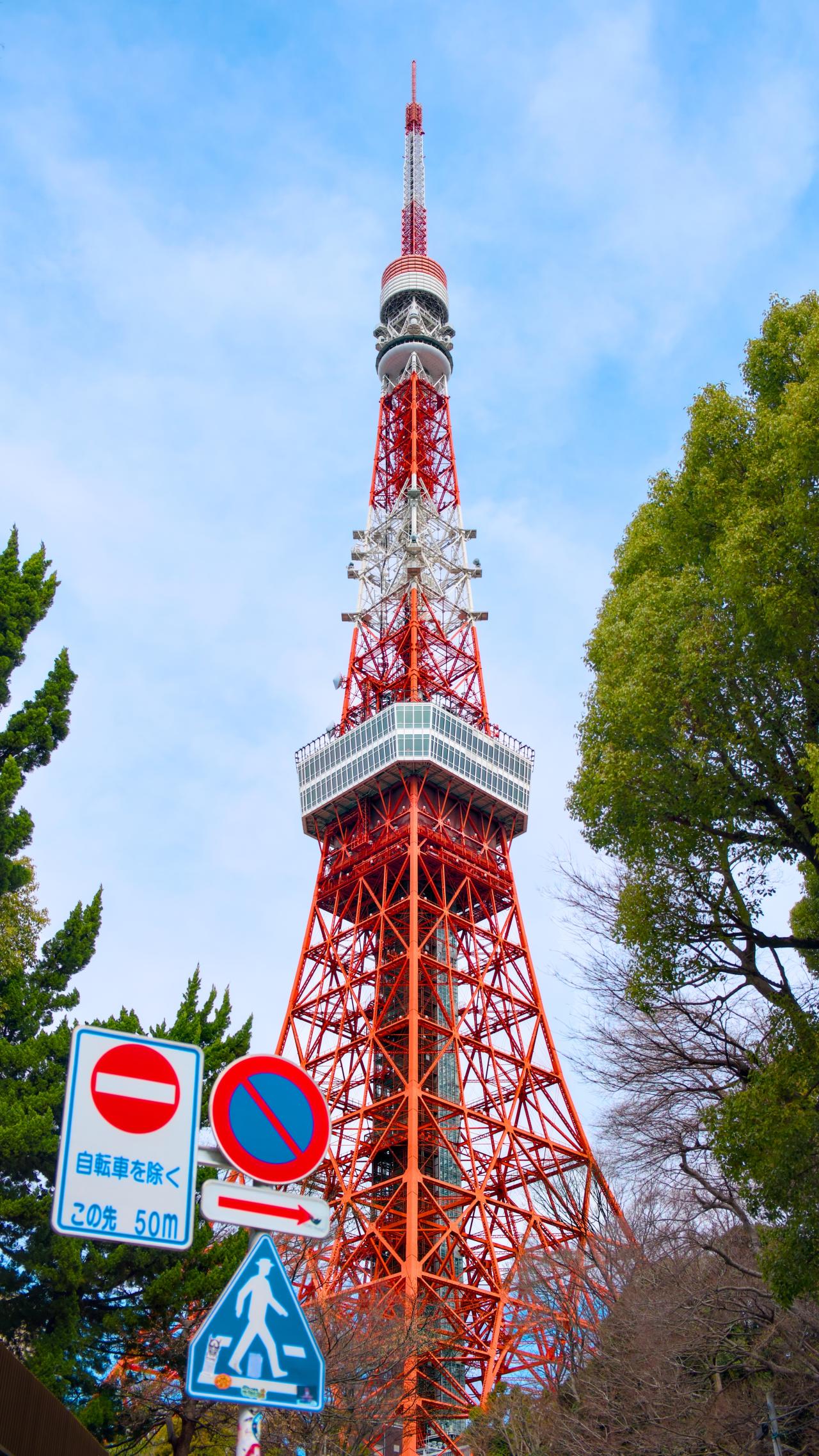这张图经过裁切以后由2:3变成了9:16,东京塔的占比提高,突出主体,并舍弃了一部分较乱树枝。在整体提升饱和度和曝光以后就先针对东京塔来做调整。
