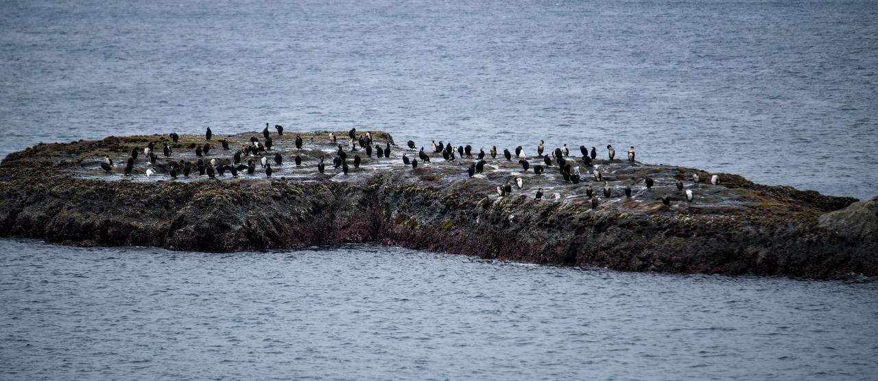 我自己的思路是,既然没有过多亮点,那么就应以整体观感为重,强调质感以及对比。那么海面和岩石的质感就尤为重要,依旧是单独选出岛屿,适当增加一些对比度来去除朦胧感,然后大幅增加纹理和清晰度,用来体现岩石的纹理并增加海鸥的区分度。接着直接反选,这样就成了一个单独选中海面的蒙版了。海面的调整与前者相近,只是将色温调的冷一些,使海面偏蓝、偏重,与之形成对比。