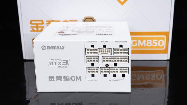 金競蝠GM850採用全模組接口設計,具有分區標識,包括三組CPU/PCIE通用接口、兩組24pin主板供電接口、三組SATA/Molex接口以及一個原生PCIe 5.1 12V-2X6接口,值得好評的是接口也採用純白設計。