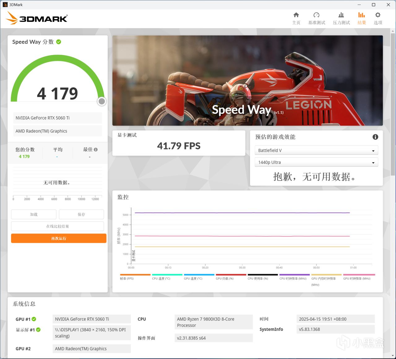 3DMARK Speed Way,索泰RTX 5060 Ti XGAMING OC 8GB顯卡分數爲4179