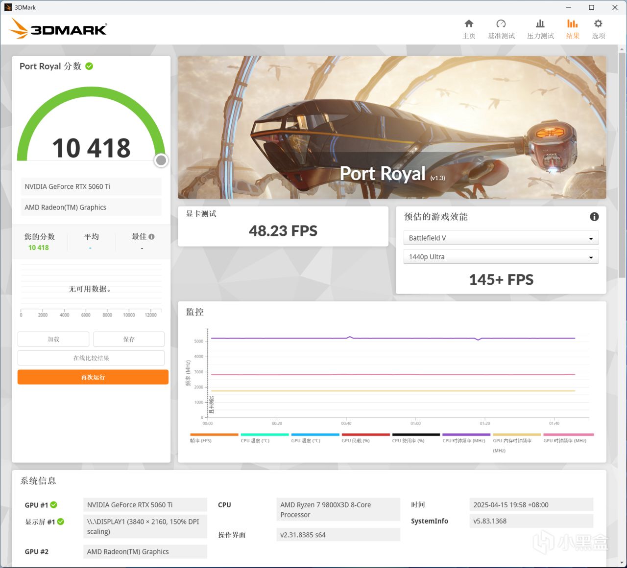 3DMARK Port Royal,索泰RTX 5060 Ti XGAMING OC 8GB顯卡分數爲10418