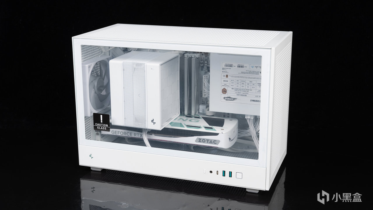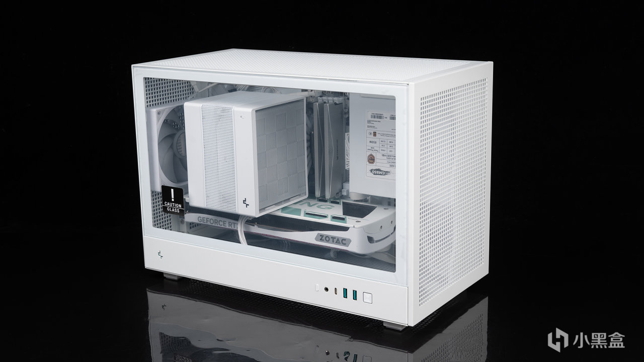 CH260前面板是磁吸設計,拆卸很方便,不過兩側面板、頂部面板都是螺絲固定,I/O面板也能拆除方便給裝機騰出最大空間。兼容性來看確實不錯,它能支持到頂部360水冷、ATX電源,長達413mm的顯卡,前部和尾部能安裝120mm風扇,這種強大的散熱結構也使得電源銘牌得以全面展示。