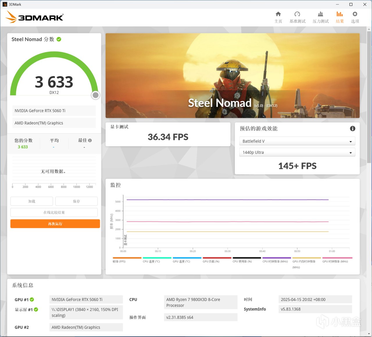 3DMARK Steel Nomad,索泰RTX 5060 Ti XGAMING OC 8GB顯卡分數爲3633