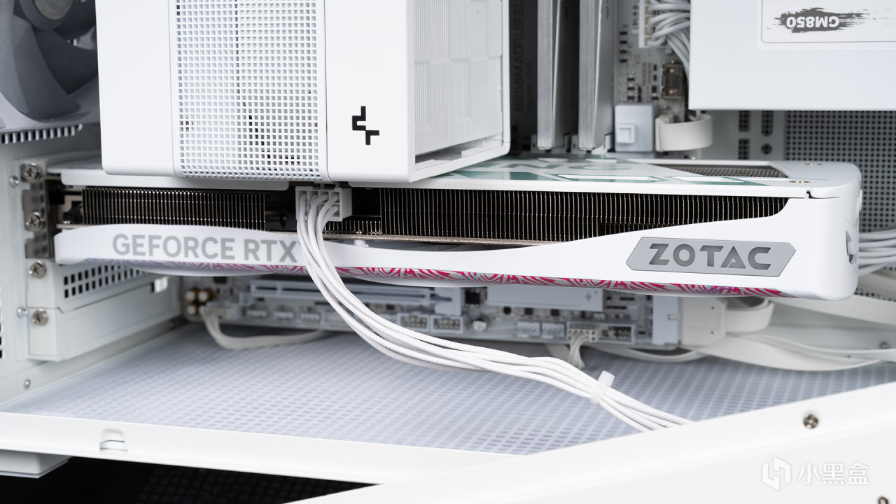 索泰RTX 5060 Ti XGAMING OC 8GB——本文的主角,安裝時和散熱器靠得比較近,由於2槽設計底部空間是相當充裕的,進風量不需要擔心~