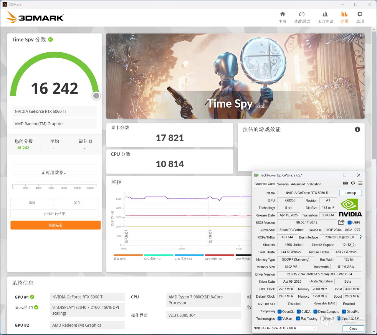 3DMARK Time Spy,索泰RTX 5060 Ti XGAMING OC 8GB顯卡分數爲16139