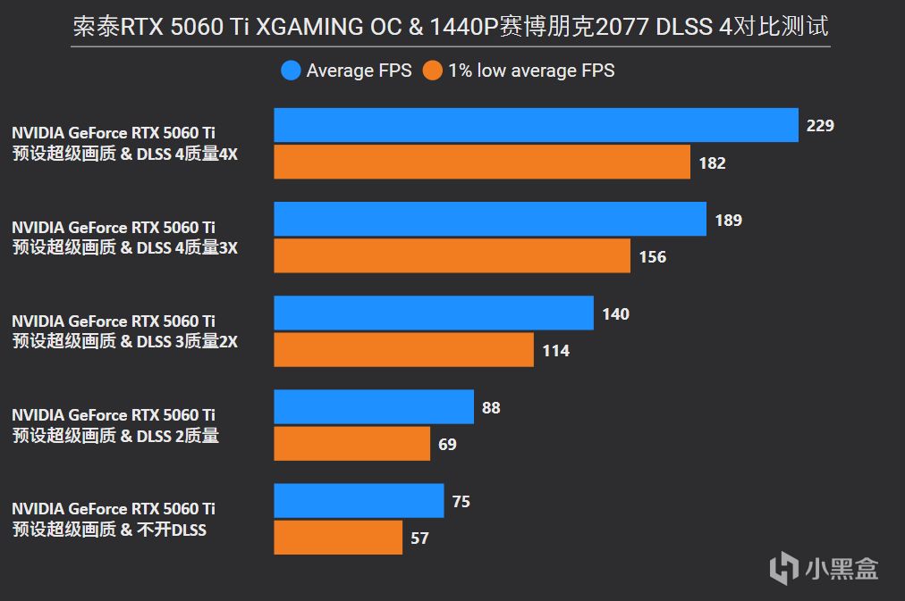 《賽博朋克2077》預設超級畫質+不開DLSS達到75fps,有DLSS輔助則是88fps,各倍率相比原生提升分別爲87%、1.5倍和2倍,因爲屬於老遊戲會比《漫威爭鋒》提升還要更大一些