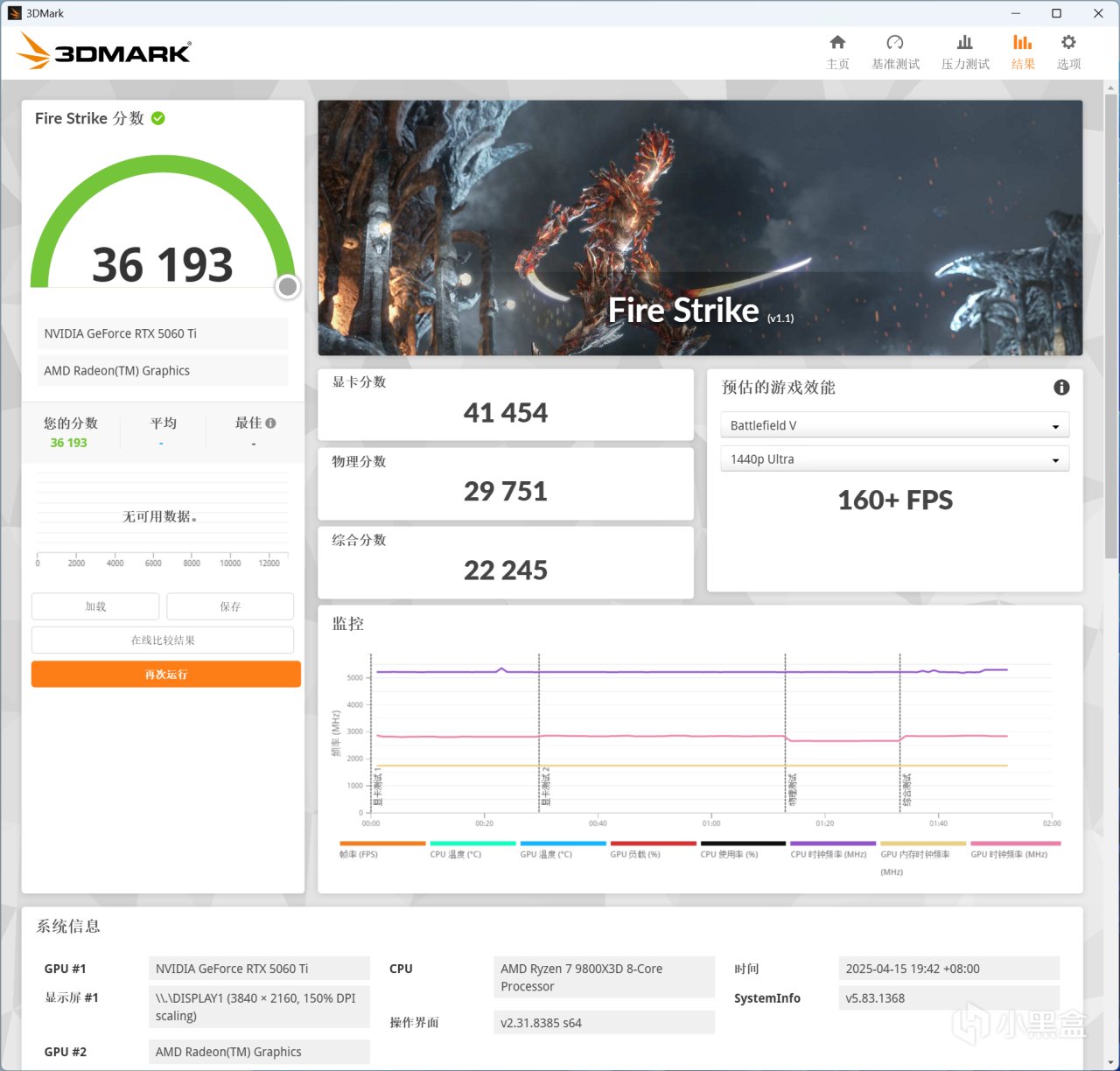 3DMARK Fire Strike,索泰RTX 5060 Ti XGAMING OC 8GB顯卡分數爲41454