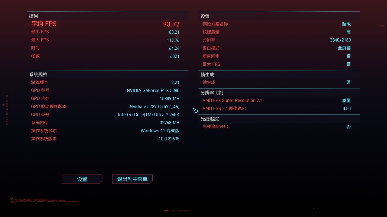 下面就來測試一下機器的整體實力,首先開機裝個驅動,開一下內存的XMP就能開始用了。Ultra7 265K規模爲8C+12c,從規格上說延續了一直以來u7 8核的傳統,但是不再使用超線程,而且使用的是臺積電N3P,功耗控制也不錯。而RTX5080則是新一代的次旗艦型號,性能和顯存都是爲了4K而設計的,同時可以看到顯卡工作在了PCIE5.0x16的通道上,這也是Ultra7 和RTX50熱血的組合技呀!