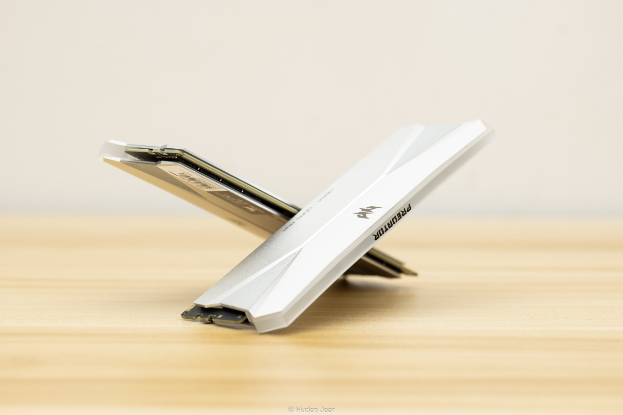 內存選了銀色比較亮眼,整體外觀也好看,同時還有RGB支持,而且掠奪者Hera上兩側的灰色區域是橡膠材質,在裝飾的同時還能增加內存的摩擦力,插拔會更加方便。