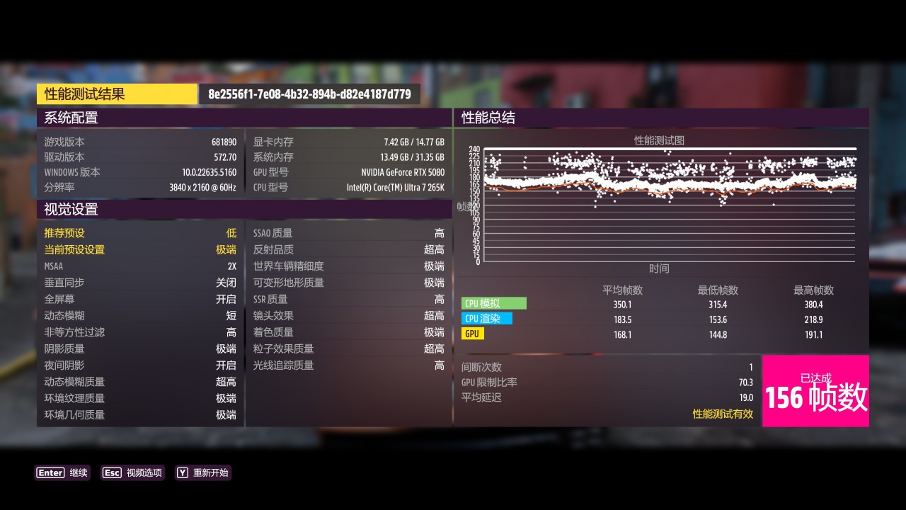 下面是一些遊戲測試,首先測測我花了大價錢現在還沒打完的刺客信條幻景吧,我沒有買首發的刺客信條影也是這個原因,要是我喫完這個罐頭再來一份必然要給我整吐了。所有測試都使用最高畫質,4K分辨率,特效能高則高,使用自帶benchmark保證可比性。可以看到這些遊戲幀數就沒有一個是90以下的,這就是RTX5080的恐怖實力