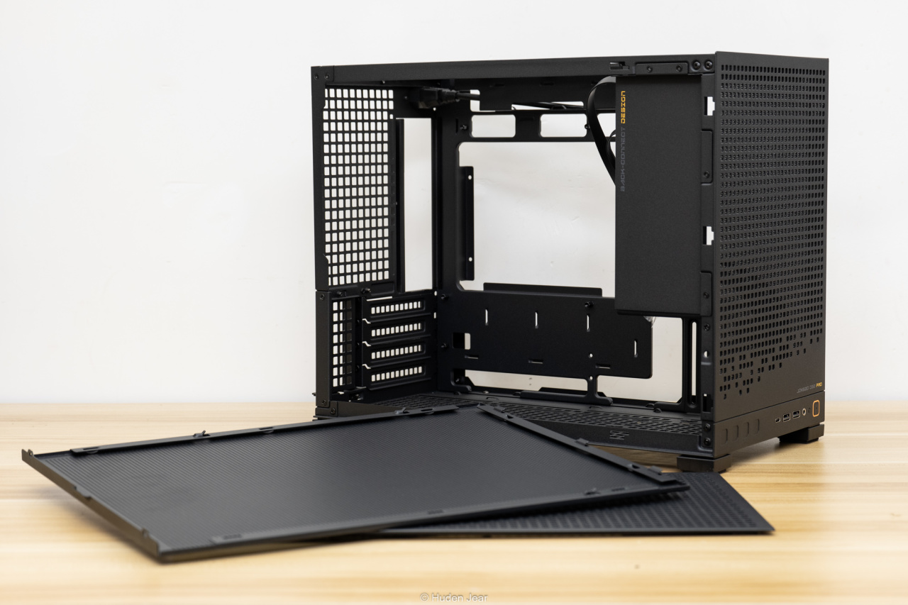 機箱配件很豐富,拆卸也是手擰螺絲爲主,各種設計都是爲了便利而誕生的。除了一側的側透玻璃以外,其他的方向都是洞洞,兼顧了顏值和散熱