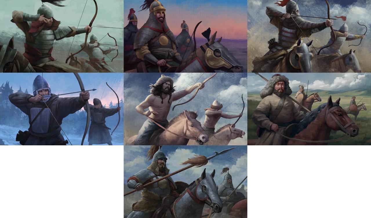 遊牧的經歷與戰爭息息相關,因此必須爲其設計豐富多樣的兵士。草原上也有各色文化,兵士的形象讓我們有機會賦予更獨特的特性。