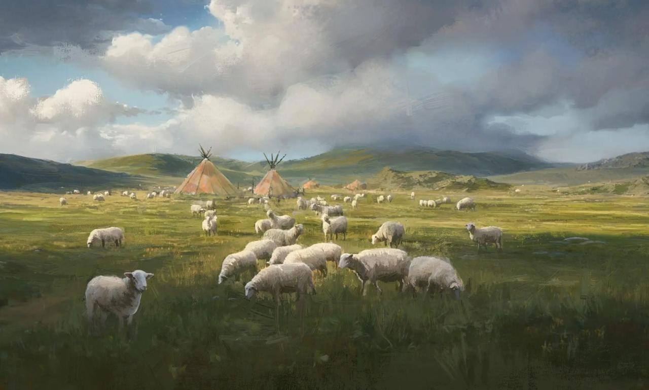 而遊牧宗族傳承,則採用橫向佈局展現向地平線延伸的大型遷徙隊伍。