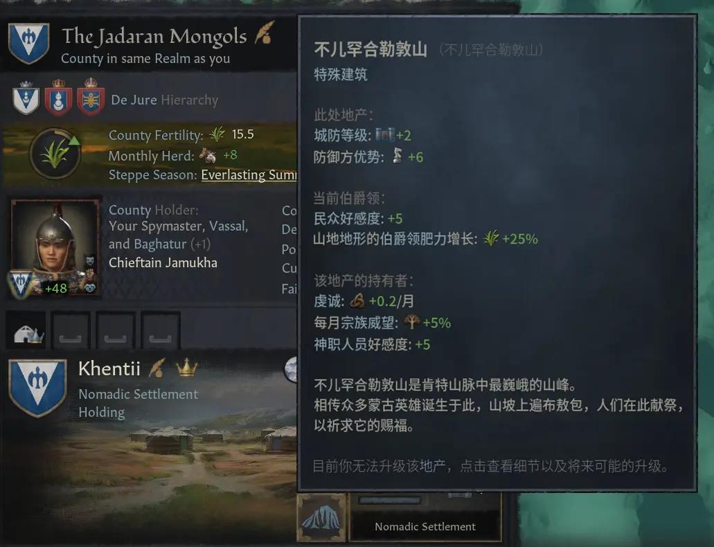 在地圖的最東端,我們添加了不兒罕合勒敦山,這是一座宏偉的山脈羣,對當地草原人民意義重大。