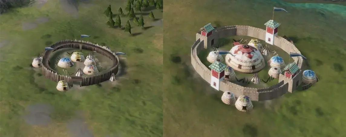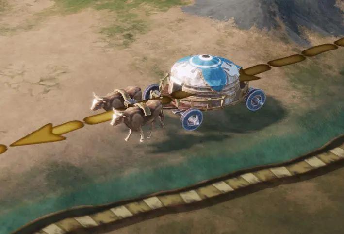 我們還爲遊牧營地遷移設計了一個獨特的模型。你的部屬將以一個牛拉帶輪氈房來表示。