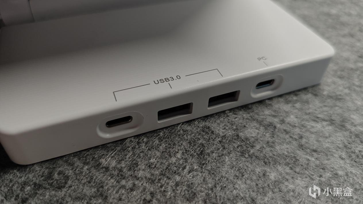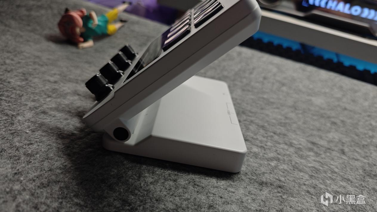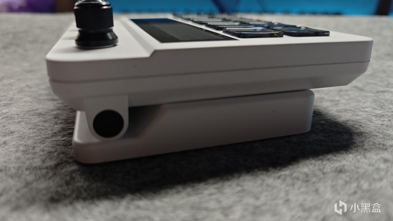 控制檯的後面是四個接口,從左到右分別是TYPEC接口、兩個USB3.0接口和連接主機的接口(配件中自帶的數據線)。黑爵AKP05不僅作爲控制檯使用,還能作爲USB擴展塢使用,兩個接口插上鼠標和鍵盤的無線接收器,非常方便,支持Windows7 64位以上、MAC OS 10.15以上的系統。