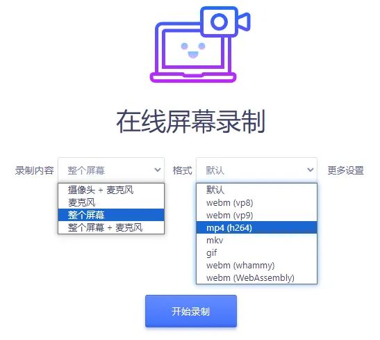 雖然它只是個網頁,但功能這塊做的還挺全面,錄製內容和格式都能隨意切換。