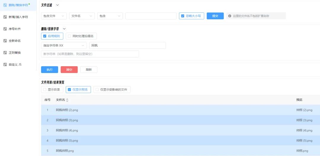 可以自由的對多個文件批量進行增刪改的操作,效果嘎嘎好,完全不輸同類型的付費工具。