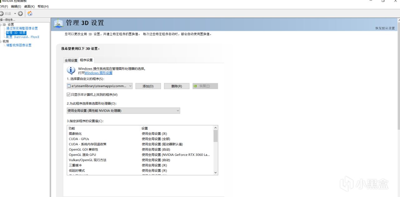程序設置這一欄也記得把遊戲運行的圖形處理器換成高性能英偉達處理器,也就是顯卡處理,切換成集成圖形會很卡