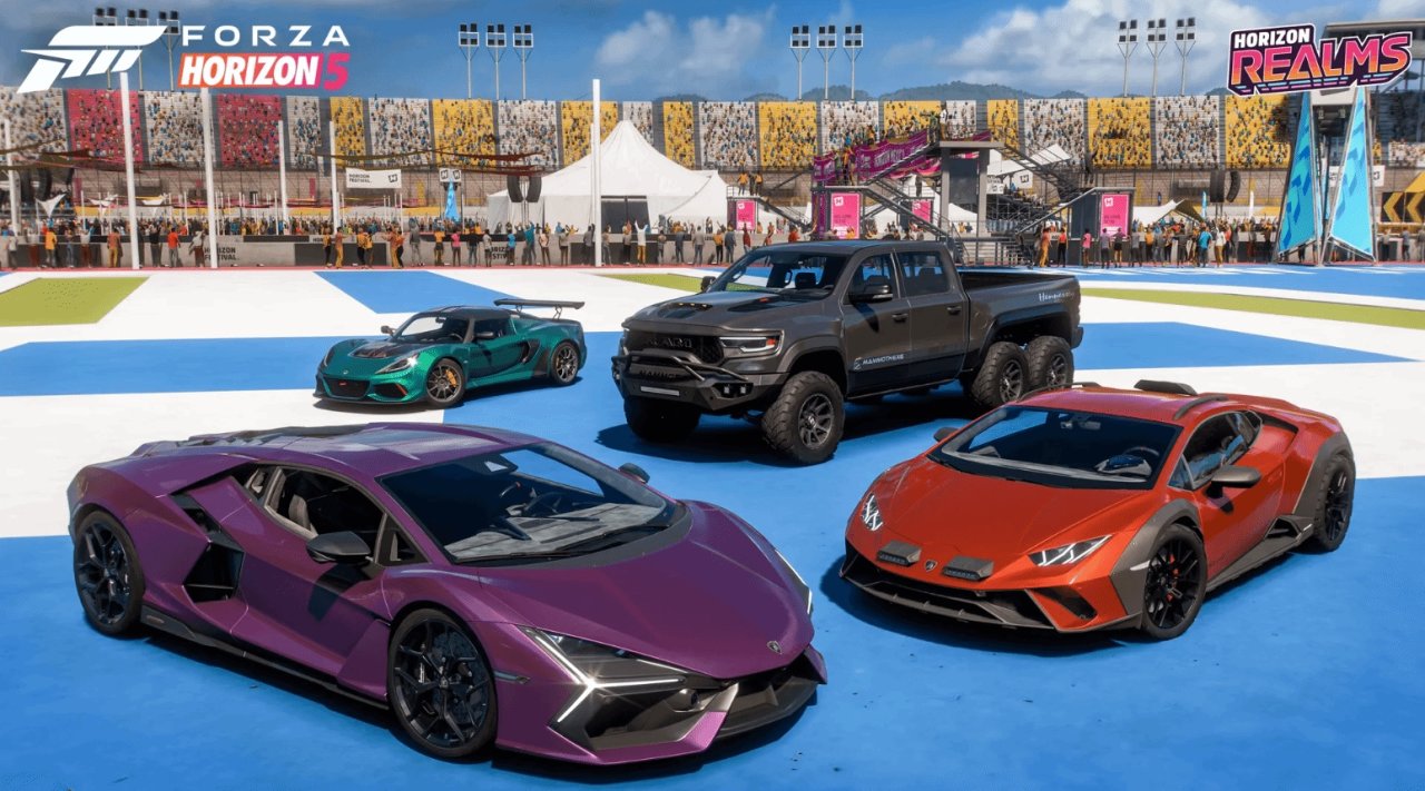 此外,游戏将同步推出史上最大规模更新——“Horizon Realms(地平线王国)”。该更新包含12个“进化世界”赛道,其中11张为曾限时开放的精选地图,另新增一座首次亮相的体育场赛道。玩家还可通过更新免费获得4款全新车辆: