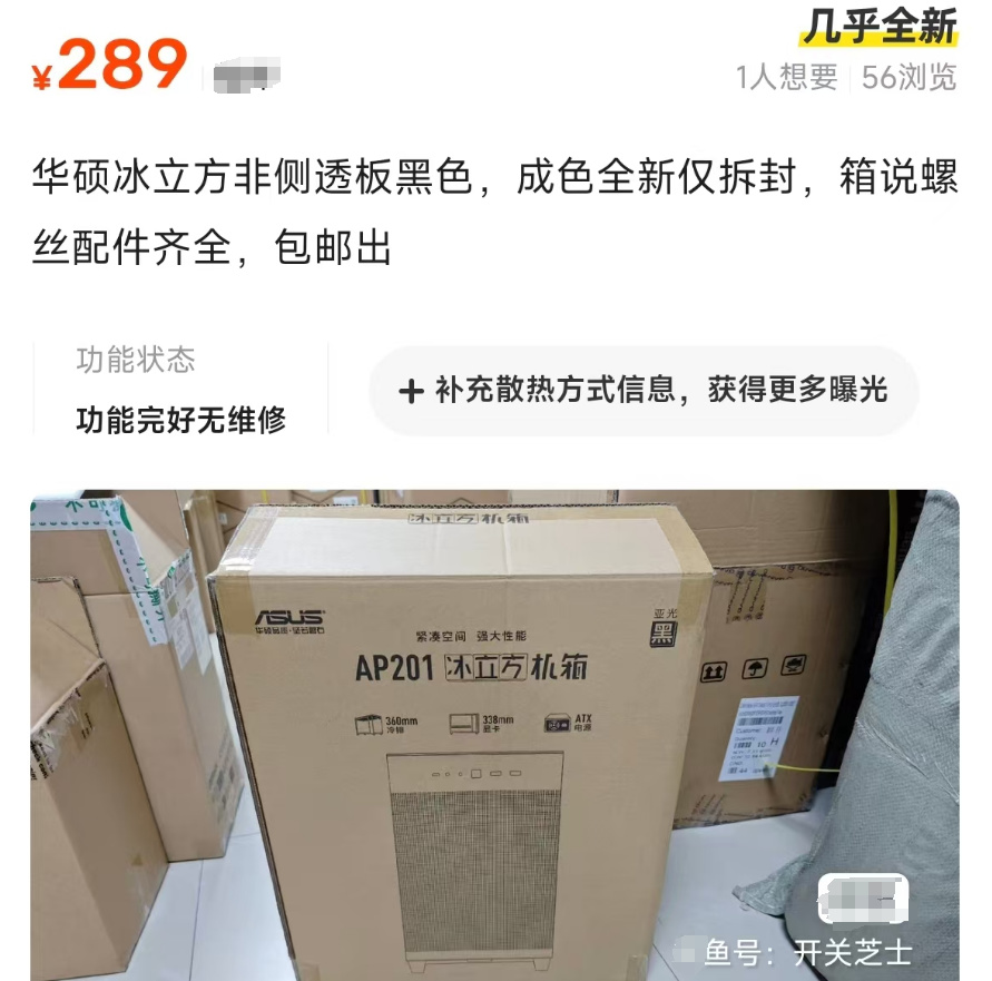 例如有款機箱幾乎全新,但顧客確實用過了,直接虧本掛某魚: