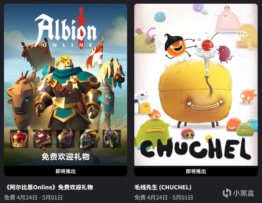 下一周赠送的免费游戏为《阿尔比恩Online-免费欢迎礼物》和《毛线先生》,领取时间4月24日~5月1日