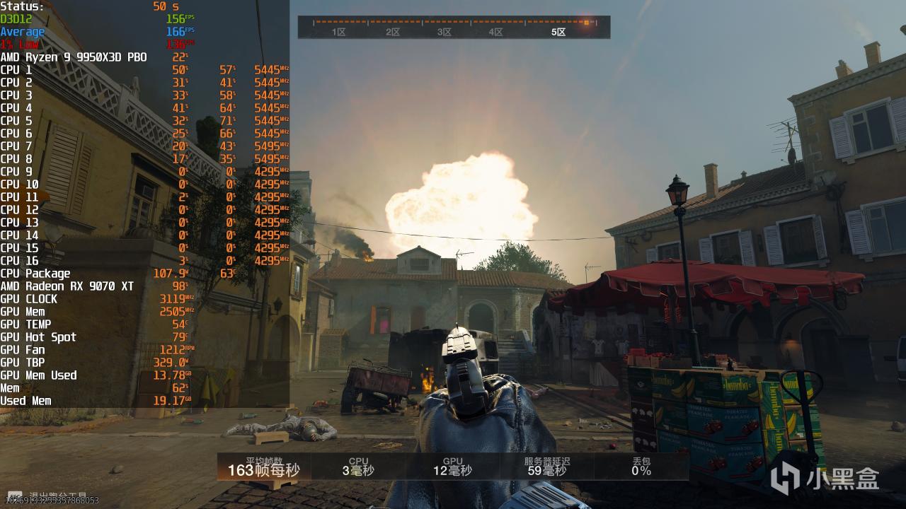 9950X3D+RX 9070 XT運行4K《使命召喚21:黑色行動6》預設極致畫質+FSR4質量檔+幀生成,平均幀數爲166fps,1% LOW幀爲136fps