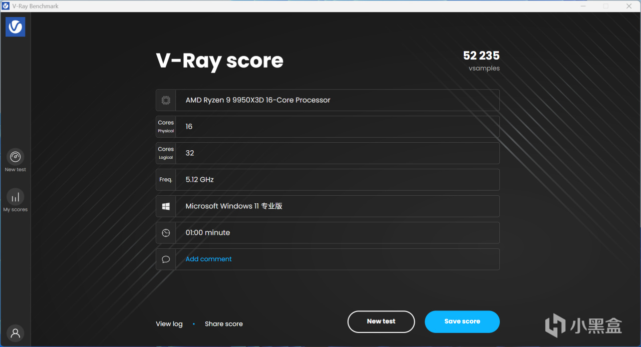 9950X3D運行V-RAY渲染器,最終得分52235,和9950X是一致的水平,屬於AMD銳龍處理器優勢項目,要比對手Ultra 9強不少的。