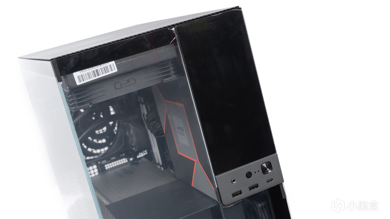 機箱正面在I/O區域採用了黑鏡面設計,雖不是AMD標誌橙色,不過是鏡面材質也比其他版本更有質感。I/O組合是USB 3.0X2、HD Audio耳麥合一、開機/重啓按鈕以及20Gbps Type-C。