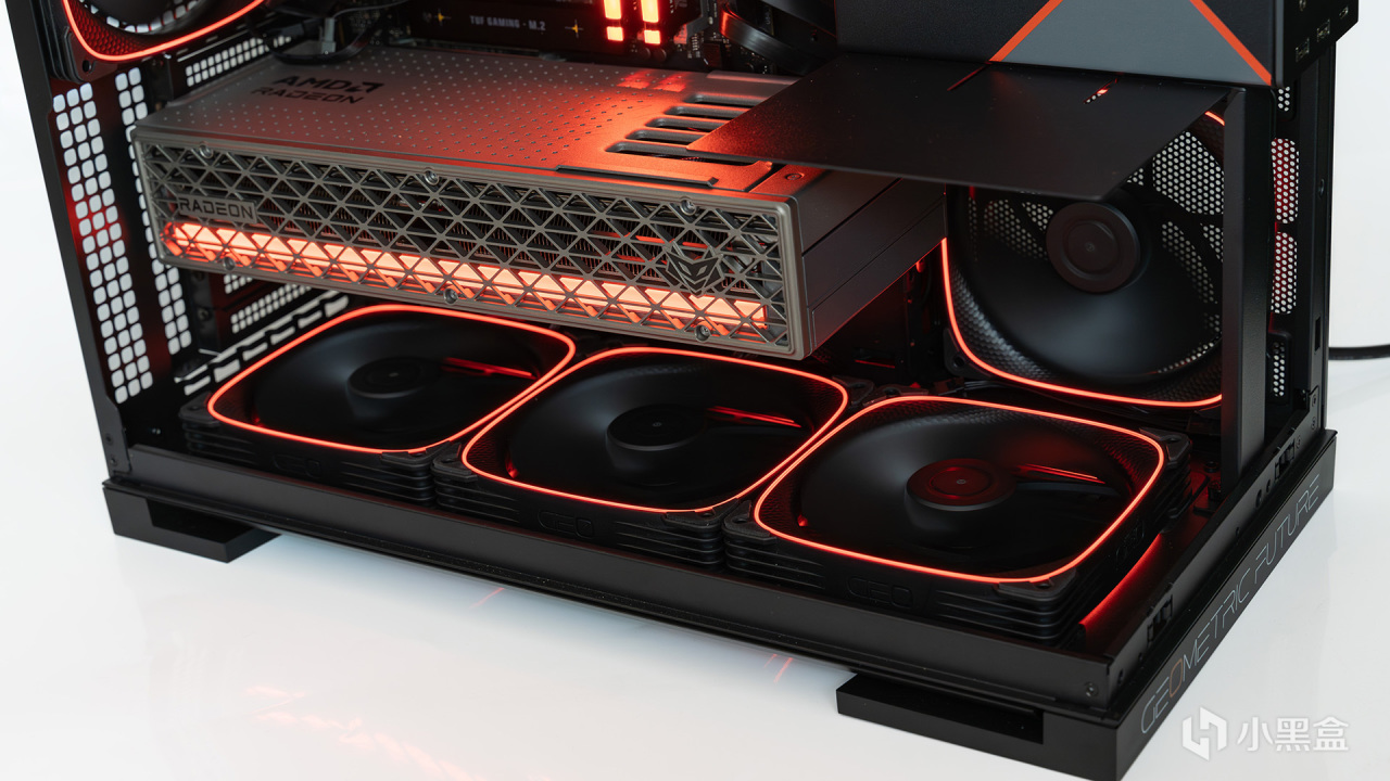 右側前部和底部擁有完美的140mm進風反葉風扇,剛好手辦平臺還能起一定隔絕作用,大量的冷空氣都會顯卡吸入,保證絕對高的散熱效率。