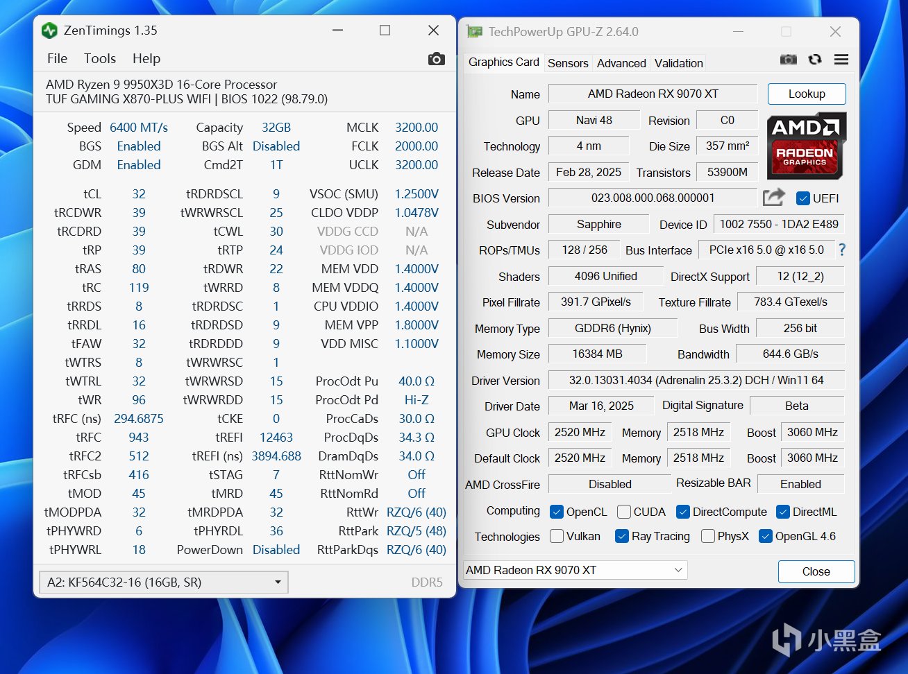 這套機器的具體配置如上,CPU是開啓PBO ENABLE檔和EXPO超頻配置,操作系統是Windows 11 24H2最新版本,顯卡驅動是AMD Adrenalin 25.3.2 Optional版本,測試室溫大致爲20℃。