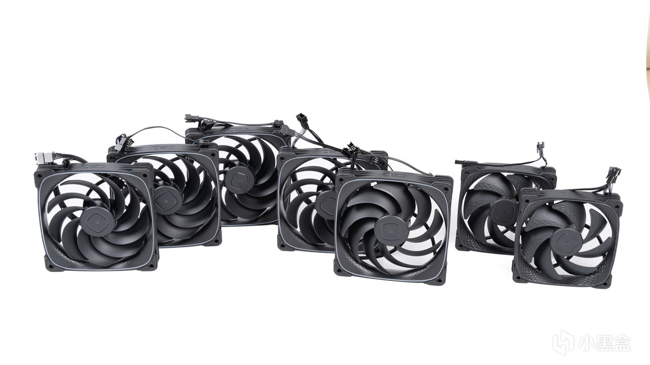 本次安裝的機箱風扇陣容強大,包括幾何未來龍鱗2503R-14B反葉*4+龍鱗2503B-14正葉*1+龍鱗2503B-12正葉*2,120和140mm只是規格和某些參數上不同,具備大量相同的特徵,扇框擁有龍鱗紋路設計,並不止是質感且因爲凹痕是利用了空氣動力學達到更好的運行效果,除此之外,他們均採用了耐用的液壓軸承且經過動平衡調校。