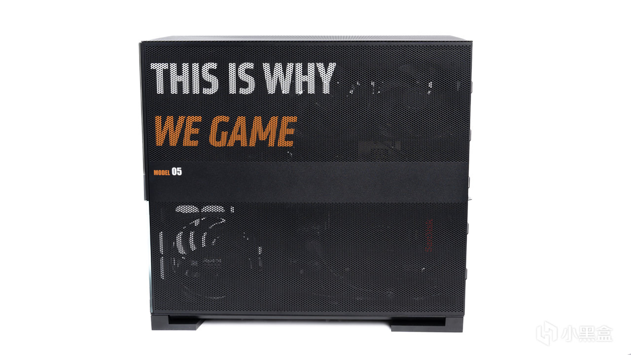 Model5悟空AMD信仰版背部側板採用大面積散熱孔,也設計了AMD經典的“THIS IS WHY WE GAME”,AMD是通過此標語強化其專注於遊戲領域的定位,就RX 9070 XT的性能和定價來看,確實也有此共鳴的。
