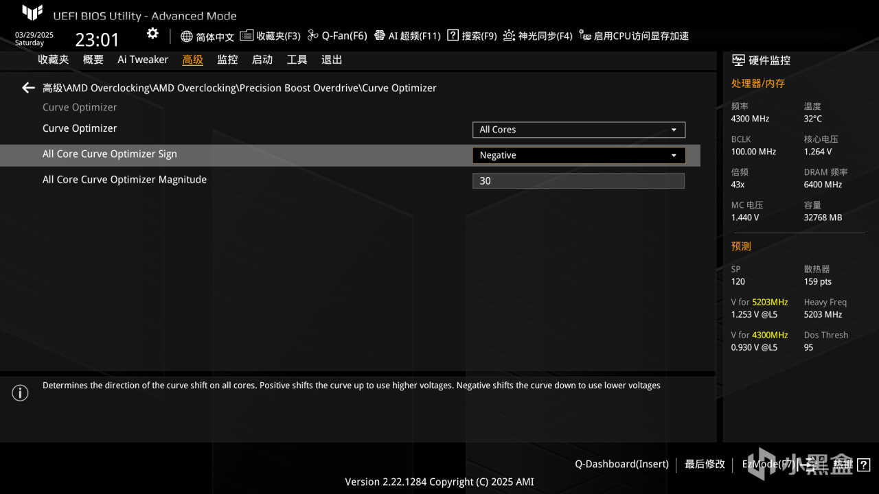 PBO 2超頻,針對9950X3D最好可以採用區分CCD核心進行負壓操作,帶有3D V-Cache的CCD 0通常可以設置更大的負壓值,正常的CCD 1則相對小一些更好,硬核手上這顆體質尚可,兩個CCD均可以設置到較大的30數值。