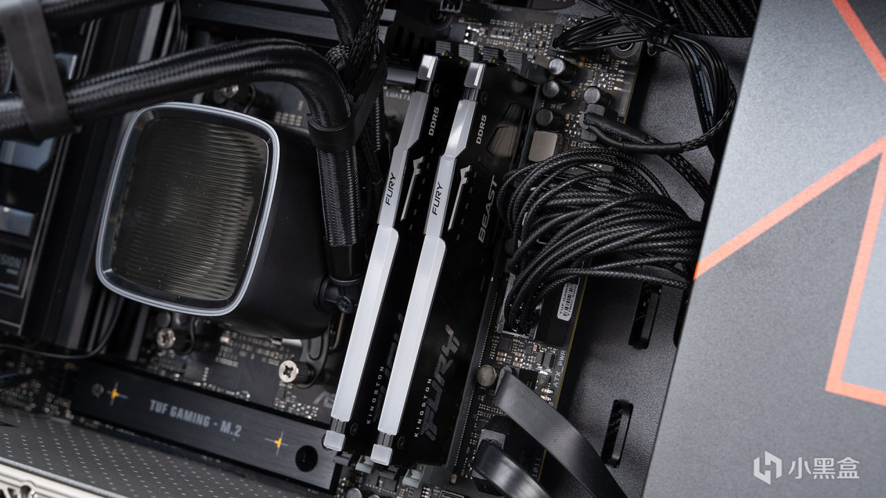 金士頓FURY Renegade DDR5 6400C32 16GB*2內存套裝,馬甲上本身也是採用金屬LOGO設計,和TUF GAMING X870-PLUS WIFI風格就完全對上了。