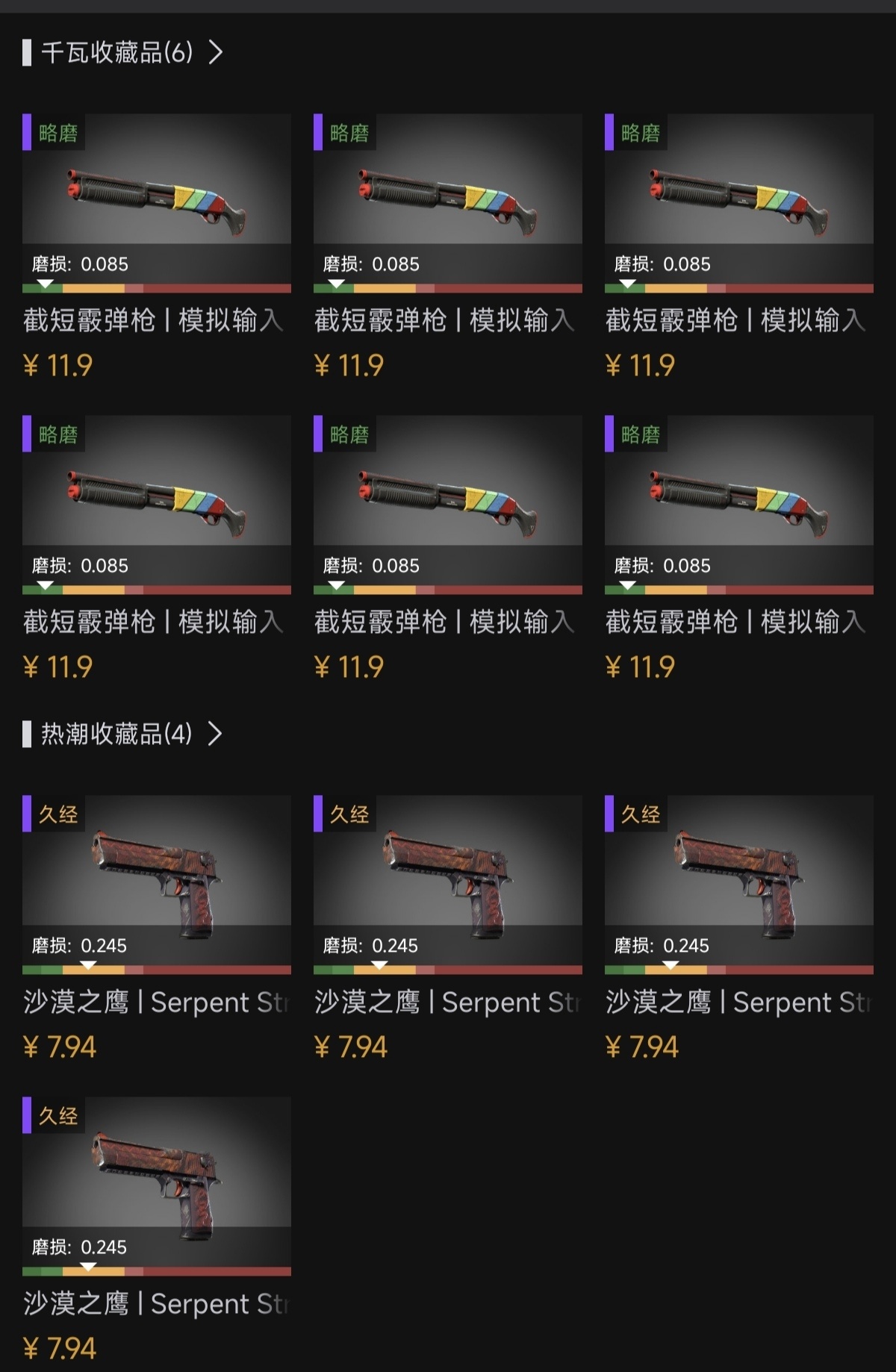 辅料四个0.245以内的久经热潮收藏品
